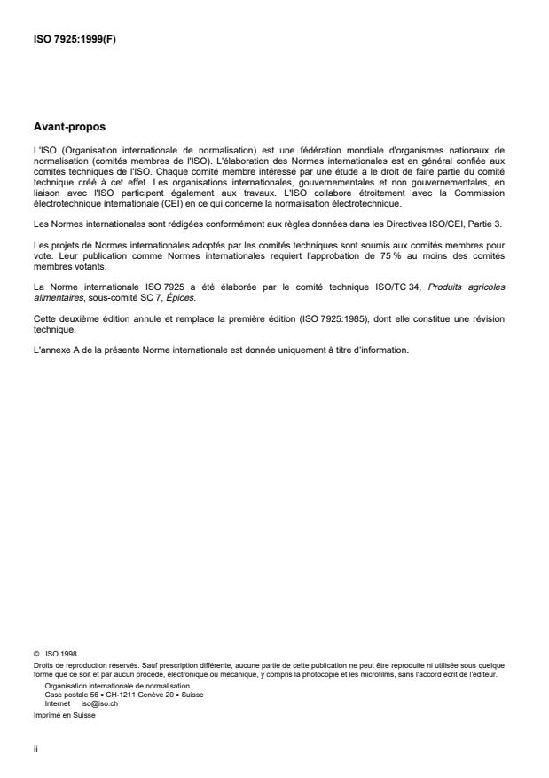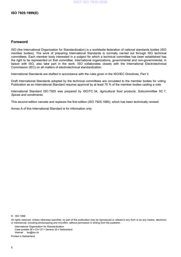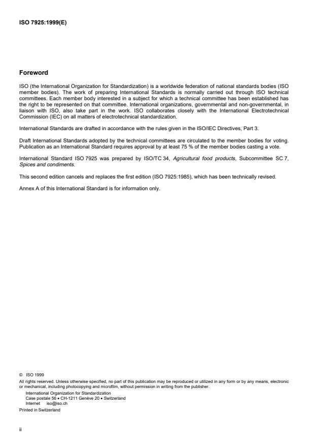 ISO 7925:1999 is part of a broader framework of ISO standards on spices and condiments, including: