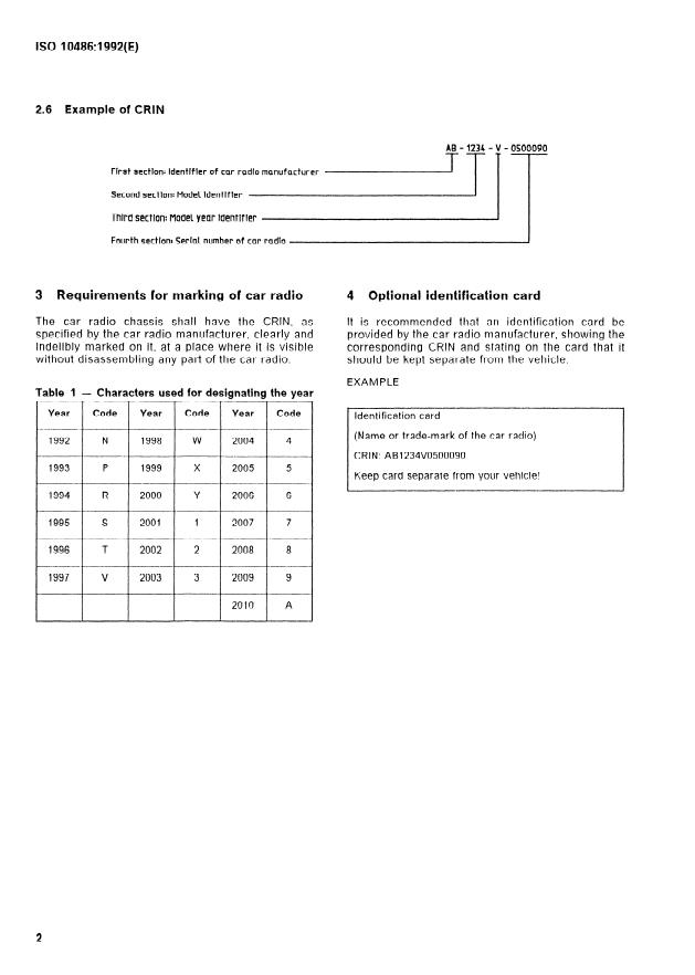 ISO 10486:1992 - Passenger cars -- Car radio identification number (CRIN)
