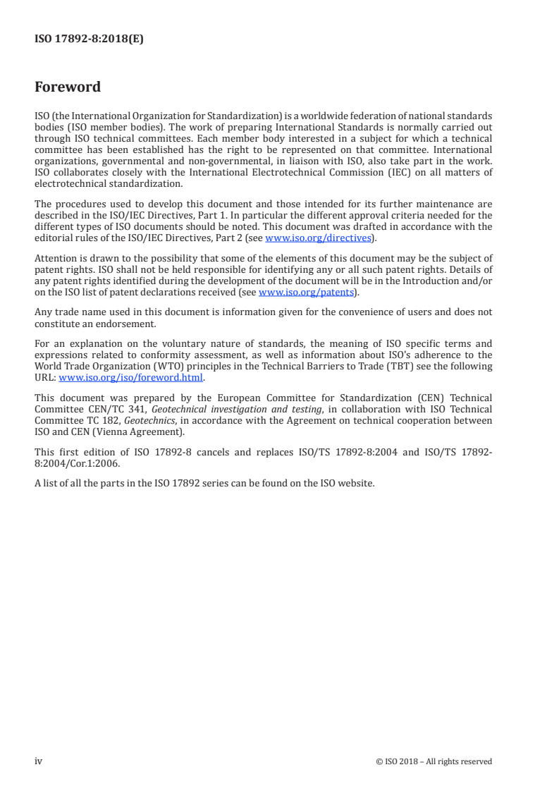 ISO 17892-8:2018 - Geotechnical investigation and testing — Laboratory testing of soil — Part 8: Unconsolidated undrained triaxial test Released:2/14/2018