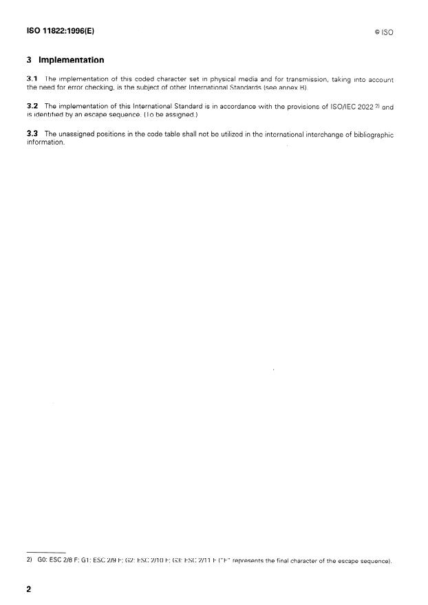 3.2 The implementation of this International Standard is in accordance with the provisions of lSO/IEC 2022 2) and