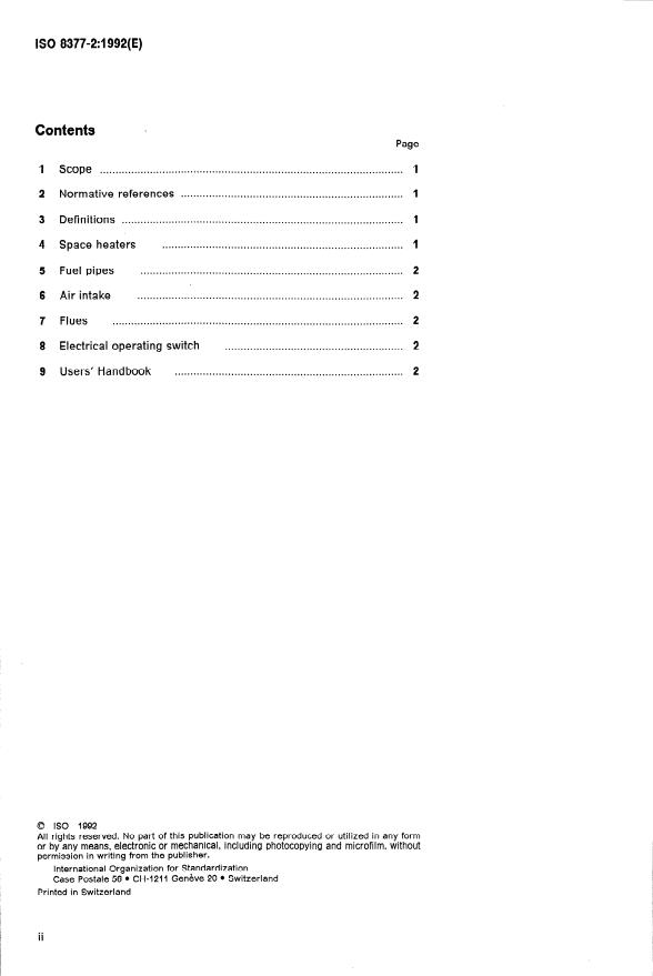 ISO 8377-2:1992 is a standard published by the International Organization for Standardization (ISO). Its full title is "Leisure accommodation vehicles — Motor caravans — Part 2: Installation of oil-fired and liquefied petroleum gas-fired space heaters". This standard covers: Specifies requirements, with particular reference to safety, for: type of heater, fitting of heater, overheating, labels of heaters; fuel pipes; air intake; flues; electrical operating switch; user's handbook.