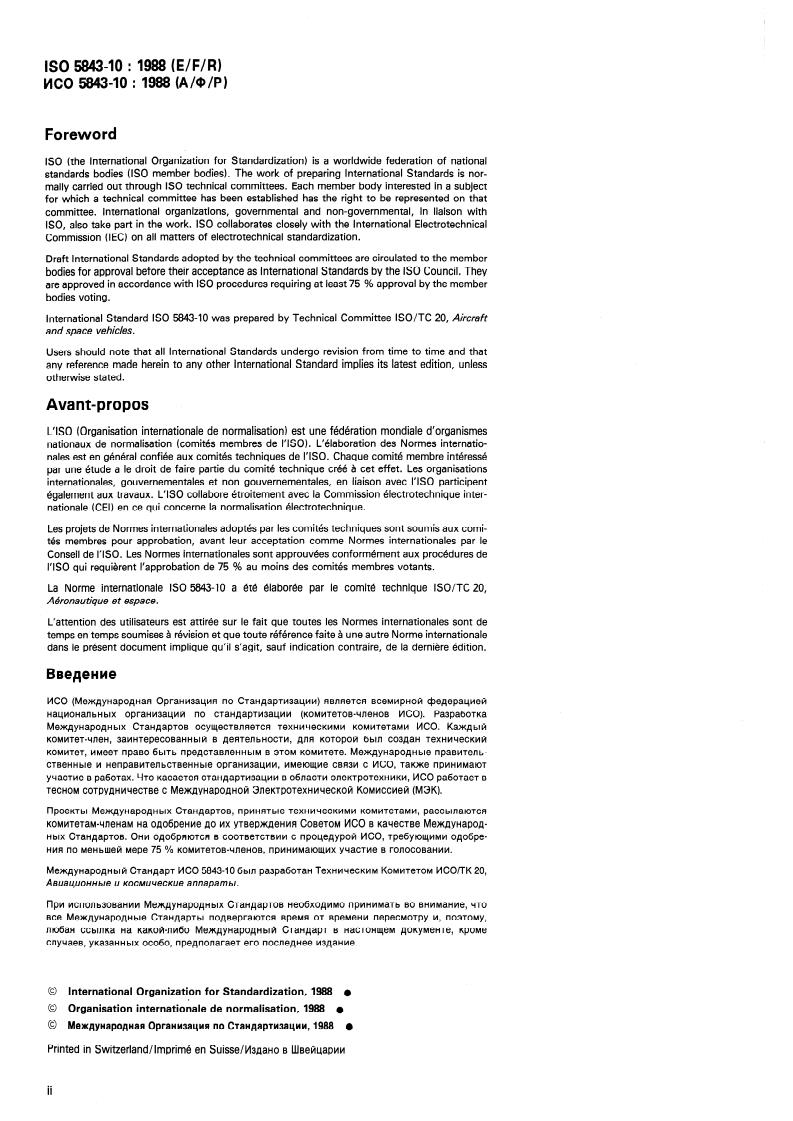 記事のタイトル:ISO 5843-10:1988-航空宇宙-同等な用語のリスト-第10部:航空機構造 記事の内容:英語、フランス語、ロシア語、ドイツ語の用語リストが含まれています。このリストは英語でアルファベット順に表示されます。このリストは航空宇宙構築に関連する同等な用語の10番目のパートを表しています。