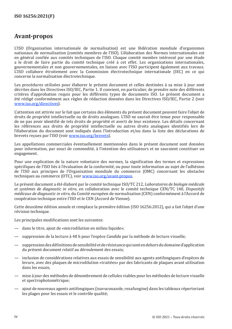 ISO 16256:2021 - Clinical laboratory testing and in vitro diagnostic test systems — Broth micro-dilution reference method for testing the in vitro activity of antimicrobial agents against yeast fungi involved in infectious diseases Released:10/14/2021