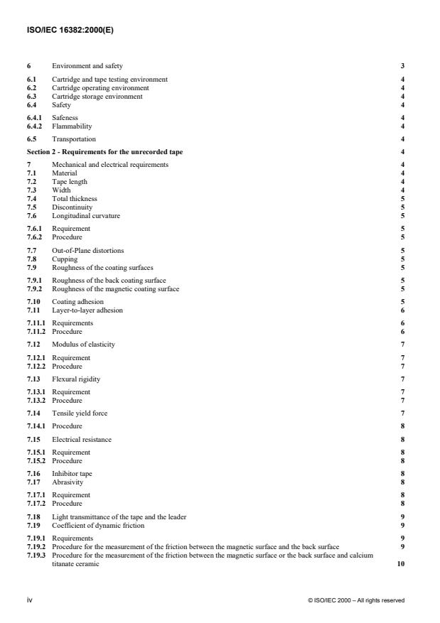 - Environment, safety and handling: operating/storage conditions, tape durability, abrasion, friction, and handling/transport recommendations (annexes include measurement and test procedures).