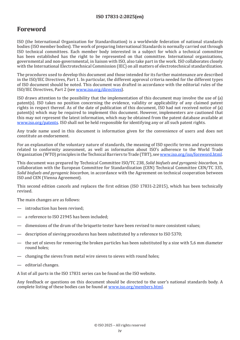 This standard is part two of the ISO 17831 series, dedicated specifically to briquettes, distinguishing them from pellets based on larger dimensions (typically above 25 mm diameter). The document builds on previous editions with updated procedures, equipment specifications, and references aligned with other key biofuel standards.