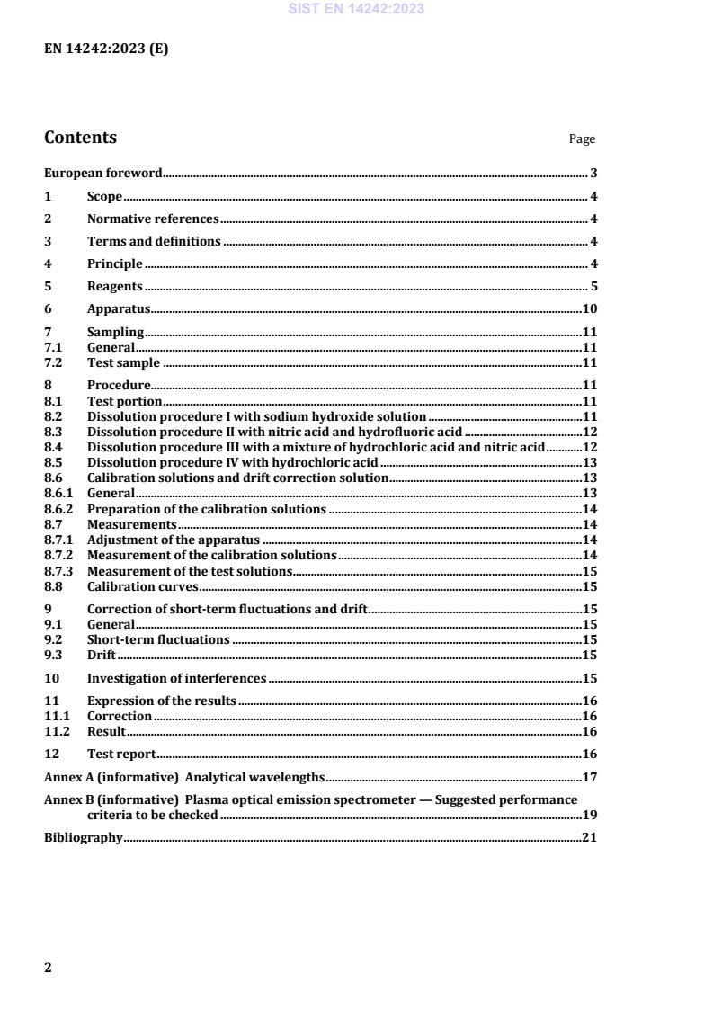 Ta evropski standard podrobno opisuje korake za raztapljanje in pripravo kalibracijskih raztopin. Prednostno se uporablja za certificiranje in analizo referenc. Vsi instrumenti, vključno s programsko opremo za preskuševalne laboratorije, se razlikujejo in so predmet sprememb. Za to so določena splošna merila za umerjanje in merjenje.
