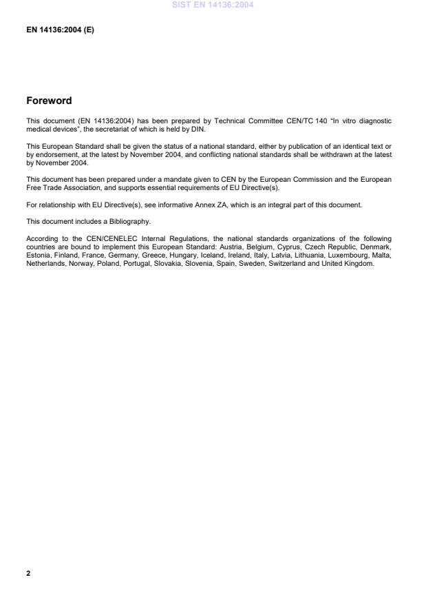 SIST EN 14136:2004 is classified under the following ICS (International Classification for Standards) categories: 11.100.10 - In vitro diagnostic test systems. The ICS classification helps identify the subject area and facilitates finding related standards.