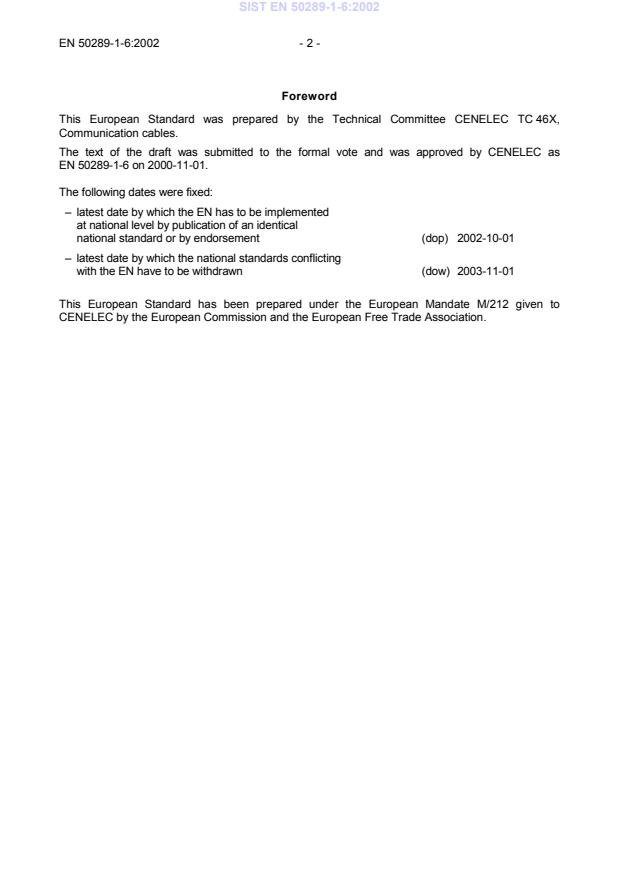 Ta slovenski standard je istoveten z: EN 50289-1-6:2002
