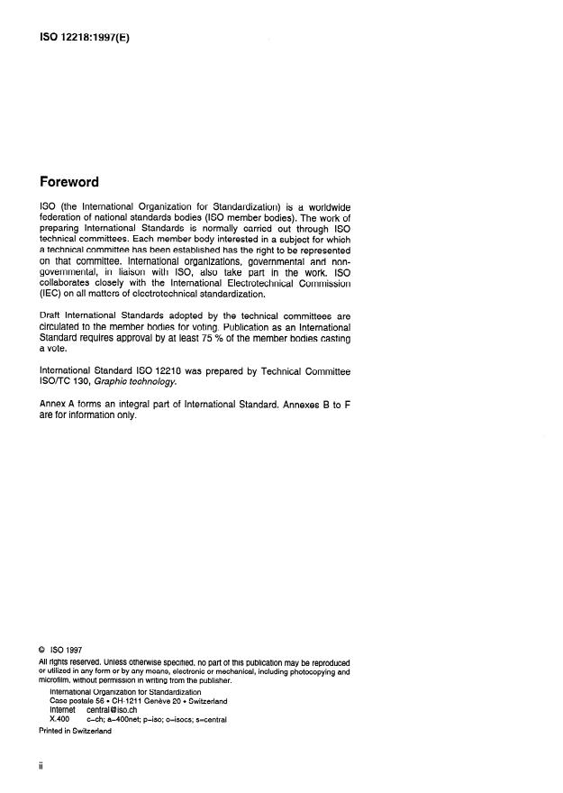 ISO 12218:1997 - "Graphic technology - Process control - Offset platemaking" is an international standard that establishes unified terminology, test methods and requirements for process control in preparing offset printing formes. Published in 1997 by ISO/TC 130 (Graphic technology), it focuses on contact-based platemaking of pre‑sensitized metal plates (vacuum contact frames, step‑and‑repeat machines and automated contact processors). Optical projection and direct‑writing techniques are excluded, although many principles are applicable by analogy.