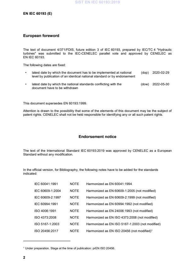 SIST EN 60193:2001 - Hydraulic turbines, storage pumps and pump-turbines - Model acceptance tests - Effective Date