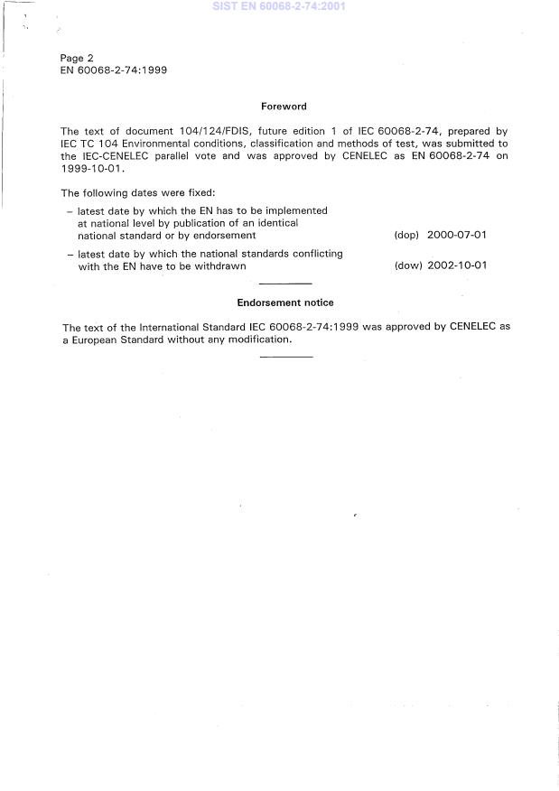 SIST EN 60068-2-74:2001 has the following relationships with other standards: It is inter standard links to SIST EN 60068-2-74:2001/A1:2018. Understanding these relationships helps ensure you are using the most current and applicable version of the standard.
