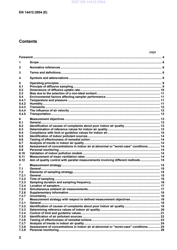 EN 13528-2:2002, Ambient air quality – Diffusive samplers for the determination of concentrations of gases and vapours – Requirements and test methods – Part 2: Specific requirements and test methods. ISO 16000-1, Indoor air – Part 1: General aspects of sampling strategy. 3 Terms and definitions For the purposes of this document, the following terms and definitions apply. 3.1 ambient air outdoor air in the troposphere, excluding indoor air and workplaces [EN 13528-1:2002] 3.2 averaging time period of time for which the measuring procedure yields a single value [EN 13528-1:2002] 3.3 cross-sectional area of the diffusion path cross-sectional area of the space inside the diffusive sampler, which is available for the diffusion process, expressed in square centimetres. This cross-sectional area may be identical to the intake opening SIST EN 14412:2004