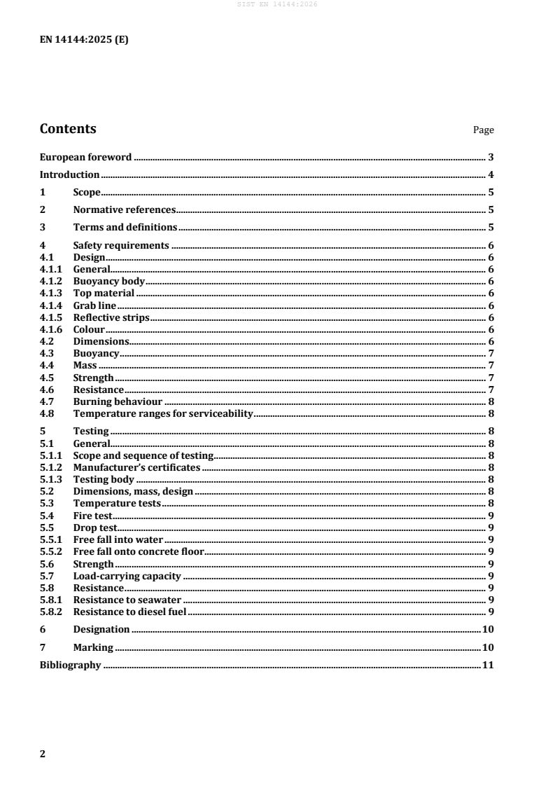 Keywords: EN 14144:2025, lifebuoys, requirements, tests, CEN, marine safety, buoyancy, grab line, reflective strips, fire test, seawater resistance, inland navigation.