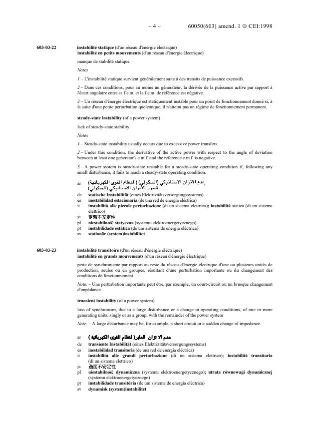 instabilité en grands mouvements (d'un réseau d'énergie électrique) . 603-03-23