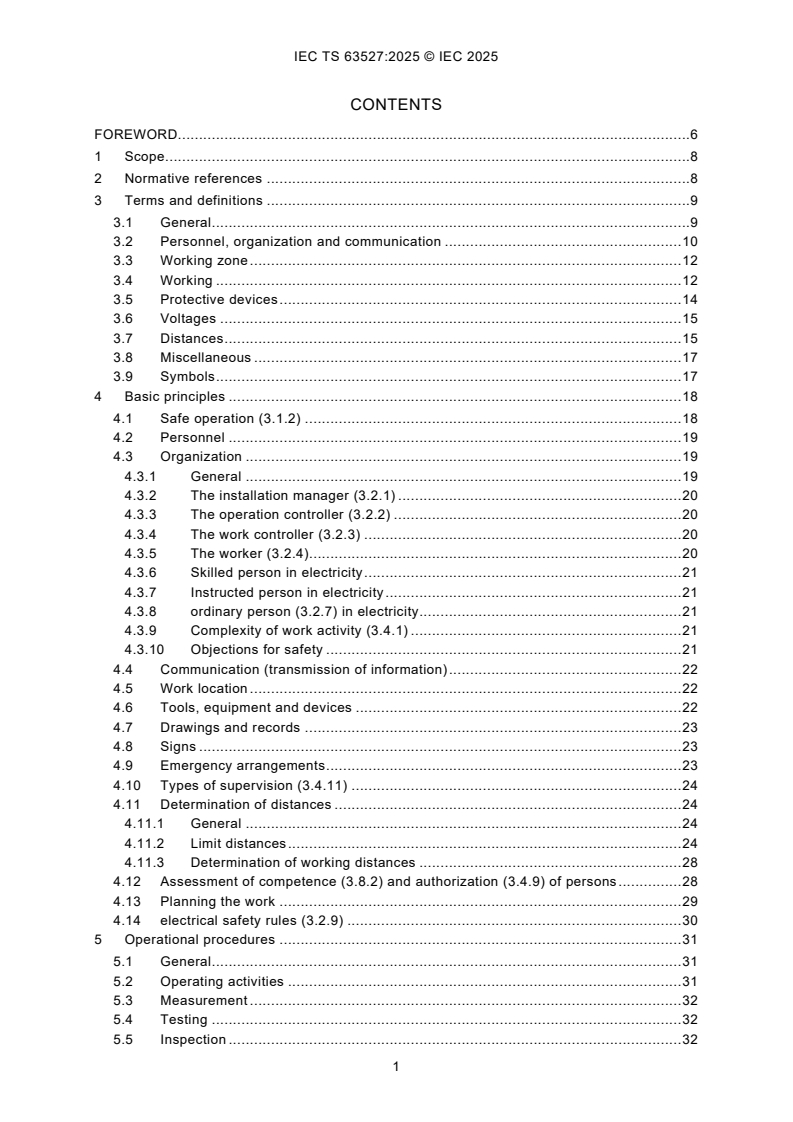 IEC TS 63527 complements other IEC publications, national electrical codes and occupational safety regulations. Users should apply this Technical Specification together with local legal requirements and any discipline‑specific standards or company procedures.