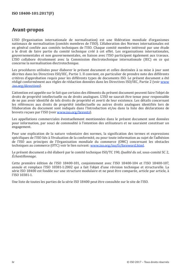 ISO 18400-101 is part of the ISO 18400 series on soil sampling and links with other parts (e.g., ISO 18400-100, ISO 18400-104) for a complete soil investigation programme.