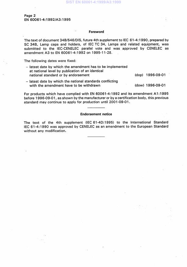 - National adoptions such as SIST EN 60061-4:1999/A3:1999 reflect the European implementation of the IEC amendment.