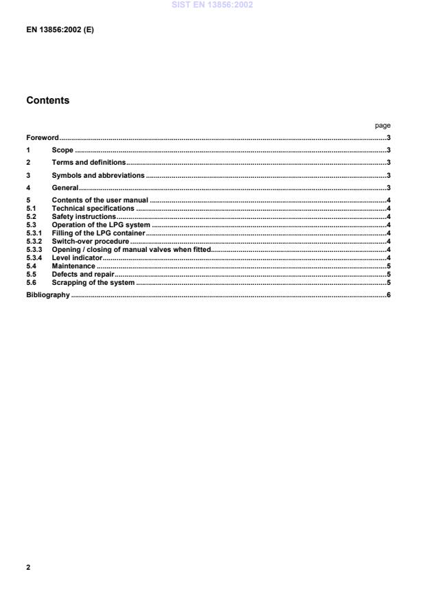SIST EN 13856:2002 is a standard published by the Slovenian Institute for Standardization (SIST). Its full title is "Minimum requirements for the content of the user manual for automotive LPG systems". This standard covers: This European Standard specifies the minimum requirements for the contents of the user manual for Automotive LPG propulsion systems fitted in road vehicles. This standard does not cover the user manual for forklift trucks or other industrial machinery.