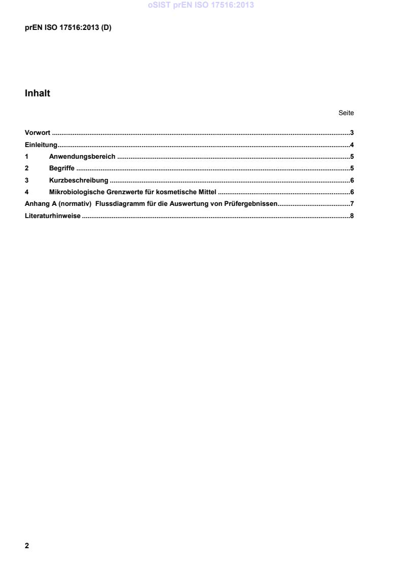 Dieses Dokument (prEN ISO 17516:2013) wurde vom Technischen Komitee ISO/TC 217 „Kosmetische Mittel“