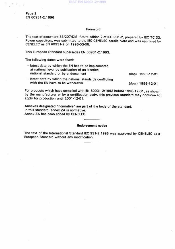 Ta slovenski standard je istoveten z: EN 60931-2:1996