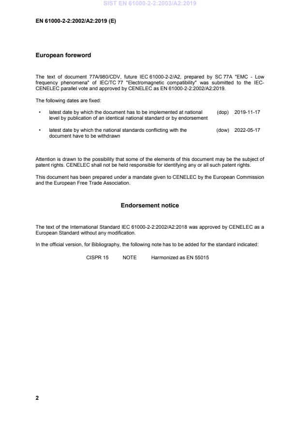 CENELEC parallel vote and approved by CENELEC as EN 61000-2-2:2002/A2:2019.