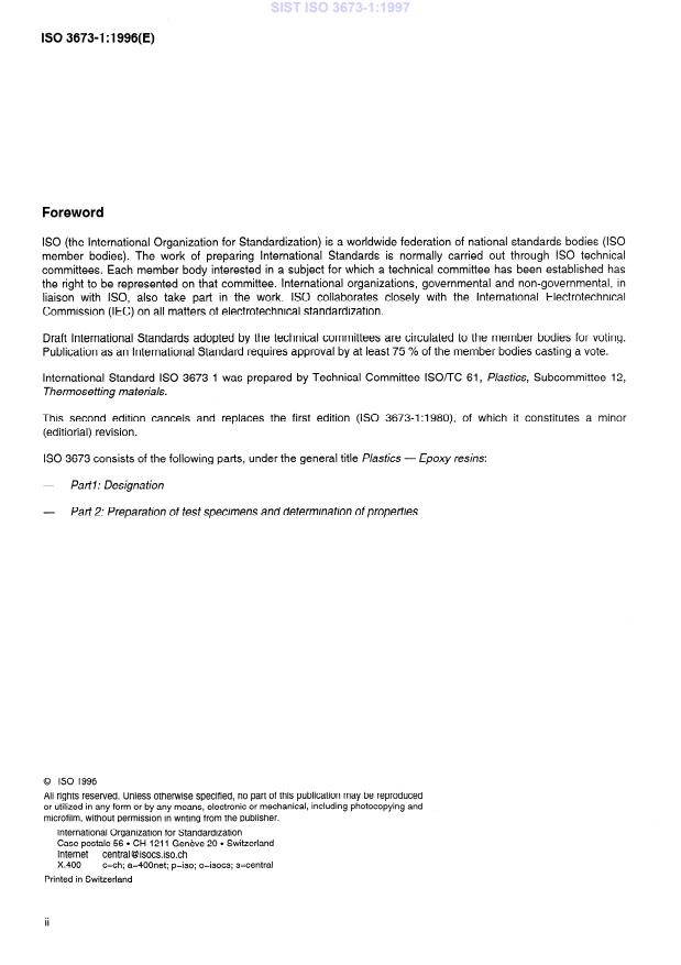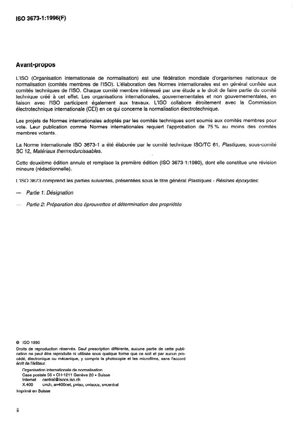L'ISO 3673 comprend les parties suivantes, presentees sous le titre general Plastiques - Résines époxydes: