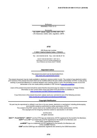 2 Draft ETSI EN 301 908-13 V13.0.1 (2019-08)