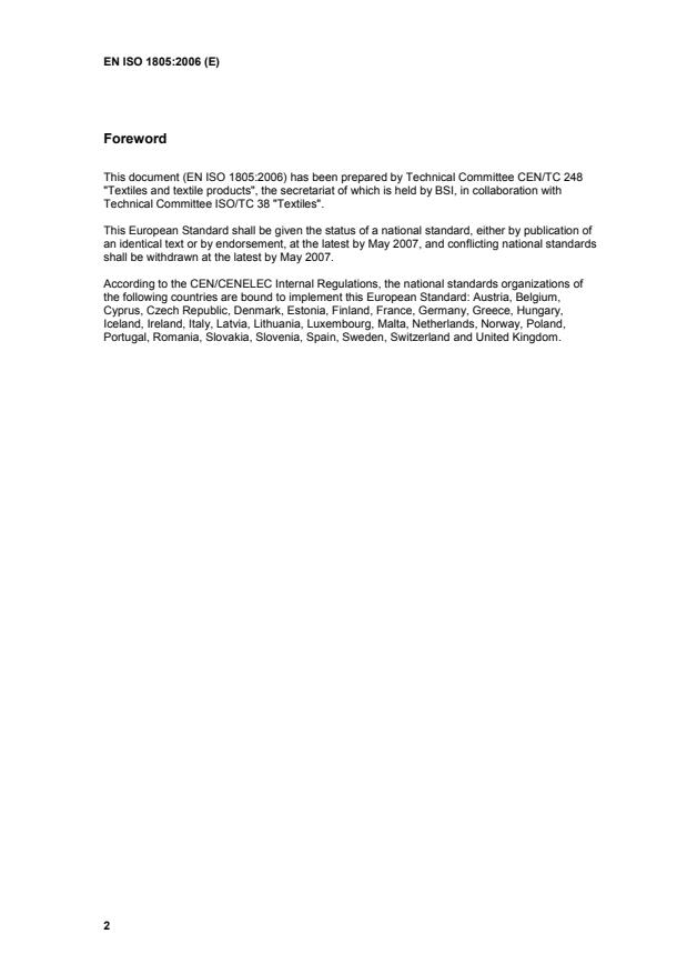 This document (EN ISO 1805:2006) has been prepared by Technical Committee CEN/TC 248 "Textiles and textile products", the secretariat of which is held by BSI, in collaboration with Technical Committee ISO/TC 38 "Textiles".