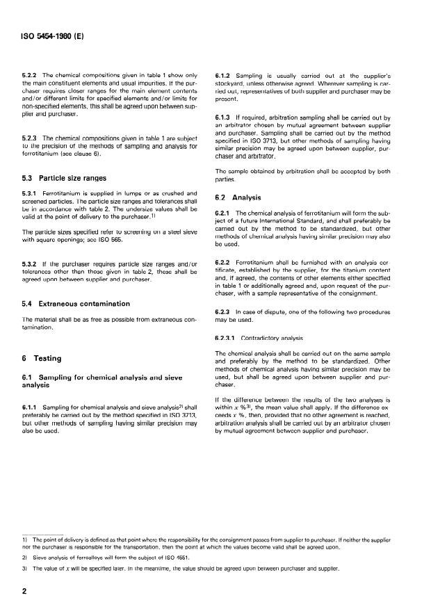 - Note: ISO 5454 anticipates further standardization of chemical analysis methods for ferrotitanium.