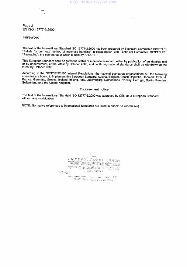 International Standard ISO 12777-2 was prepared by Technical Committee ISO/TC 51, Pallets for unit load method