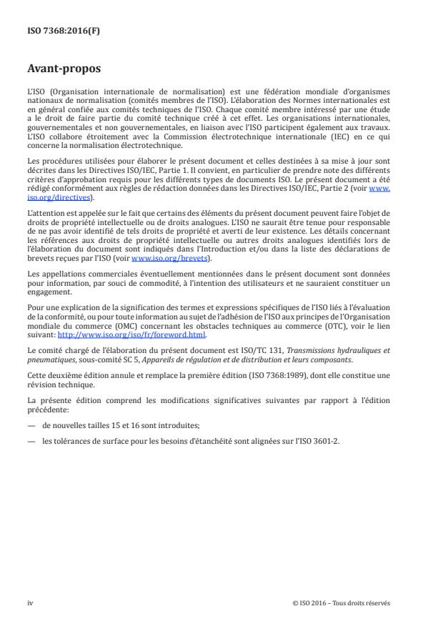 ISO 7368:2016 - Transmissions hydrauliques -- Distributeurs a cartouche, a bride, a deux orifices -- Logements