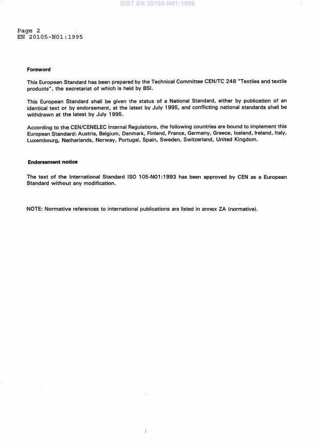 Ta slovenski standard je istoveten z: EN 20105-N01:1995