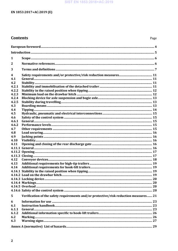 EN 1853 focuses on practical safety elements for agricultural trailers with tipping bodies. Major technical topics include: