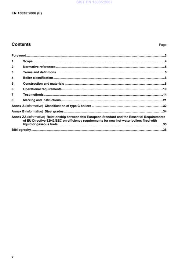 SIST EN 15035:2007 is a standard published by the Slovenian Institute for Standardization (SIST). Its full title is "Heating boilers - Special requirements for oil fired room sealed units up to 70 kW". This standard covers: This European Standard applies to type CX3 central heating boilers as specified in 4.1, equipped with atomizing oil burners: type C13, type C33, and type C53 boilers, including their combustion air supply and combustion products evacuation ducts and their terminals; type C43 boilers including their connection ducts but without the chimney which is erected as a shared duct system and which is part of the building; type C63 boilers, including the connecting piece as specified in 3.7, if not integrated into the boiler; type C83 boilers, including their connection ducts but without the chimney which is part of the building; that have a nominal useful heat output below or equal to 70 kW; where the temperature of the water does not exceed 100 °C during normal operation; where the maximum water-side operating pressure does not exceed 8 bar. This European Standard is intended to establish specific requirements and test methods for type C atomizing oil burning central heating boilers with respect to construction, safety, fitness for purpose, rational use of energy, classification and marking. This European Standard only covers standard tests. For boilers that produce domestic hot water by a drum or exchanger, integrated or juxtaposed, (by accumulation of instant production), this standard only applies to hot water reheating system components that are not subject to operating conditions applicable to the boiler heating system. This European Standard covers units consisting of boilers equipped with burners that meet the requirements of EN 267, with the following exceptions: maximum NOx and CO emission values, estimated for boilers according to the classes defined in EN 303-2; air factor value, defined by the manufacturer and stated in the boiler’s technical specifications; marking and/or burner data plate which may provide information for the boiler data plate; installation recommendations for installing the burner on the boiler included