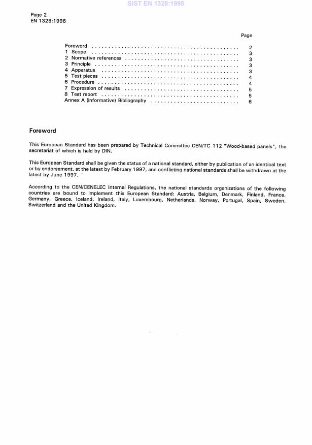 SIST EN 1328:1998 is a standard published by the Slovenian Institute for Standardization (SIST). Its full title is "Cement bonded particleboards - Determination of frost resistance". This standard covers: This European standard specifies a test method for the determination of frost resistance of cement bonded particleboards.