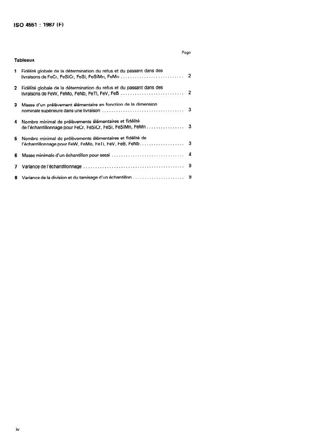 ISO 4551:1987 - Ferro-alliages -- Échantillonnage et analyse par tamisage