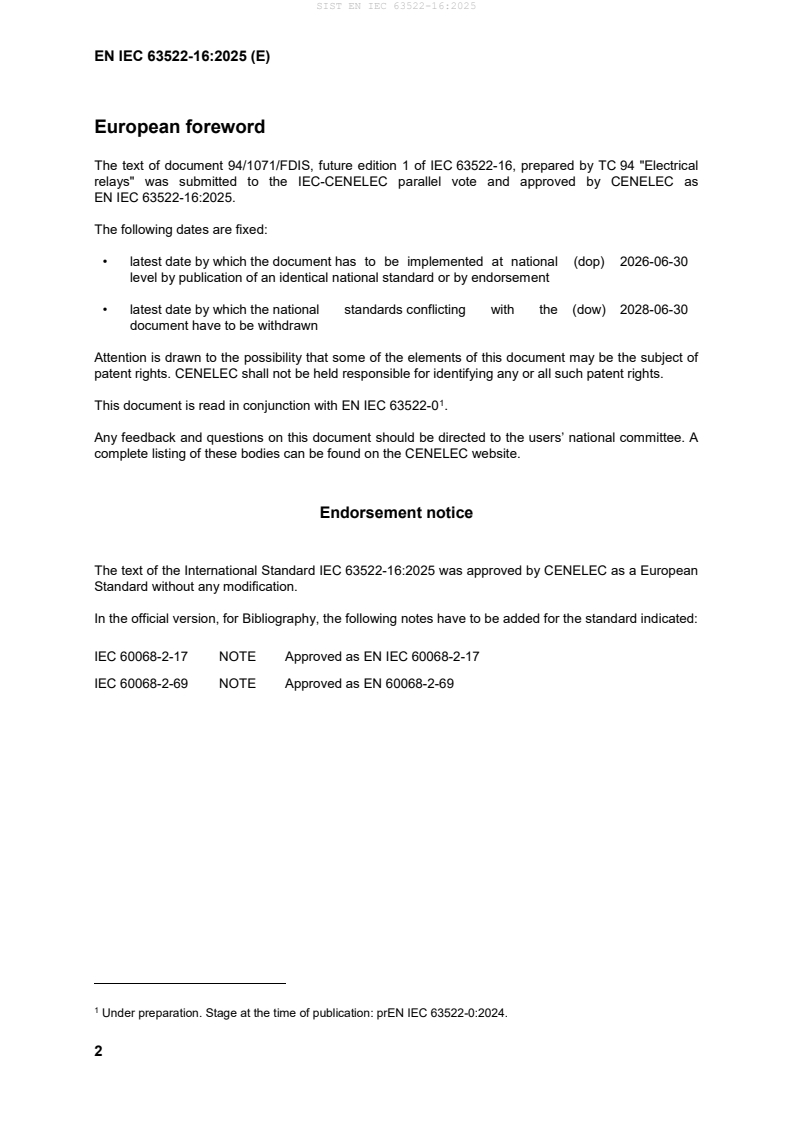 relays" was submitted to the IEC-CENELEC parallel vote and approved by CENELEC as