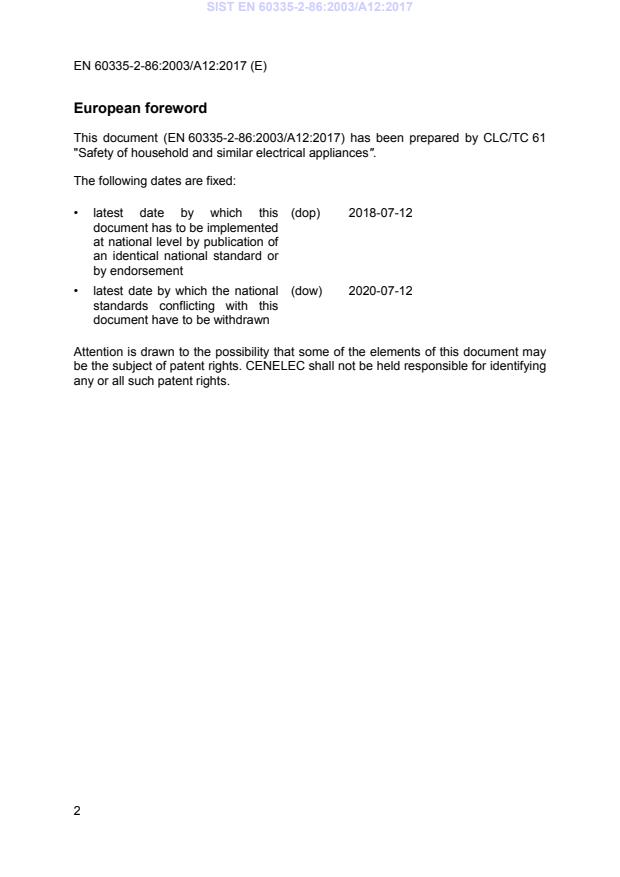 This amendment A12 modifies the European Standard EN 60335-2-86:2003; it was approved by CENELEC on 2017-07-12. CENELEC