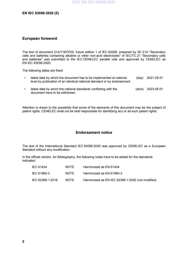 SIST EN IEC 63056:2021 is classified under the following ICS (International Classification for Standards) categories: 29.220.30 - Alkaline secondary cells and batteries. The ICS classification helps identify the subject area and facilitates finding related standards.