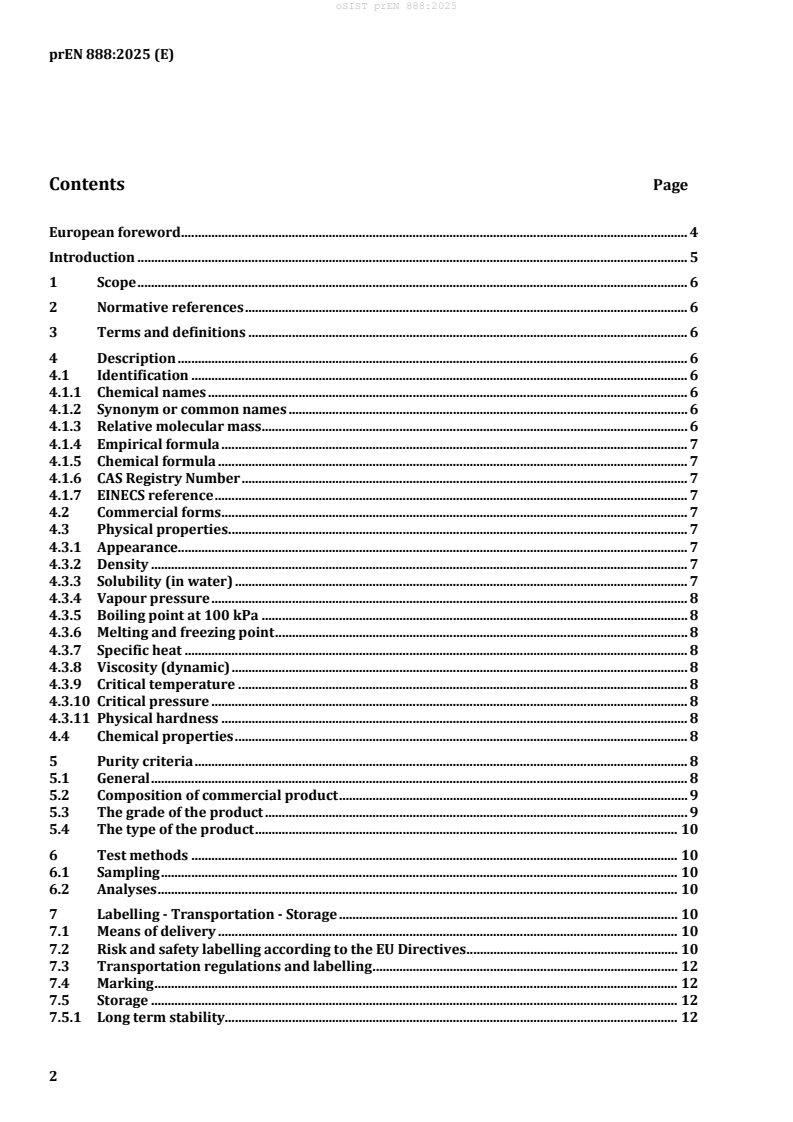National regulations and EU Directives related to chemical safety, transportation, and environmental protection should also be considered in conjunction with oSIST prEN 888:2025 to ensure comprehensive compliance.