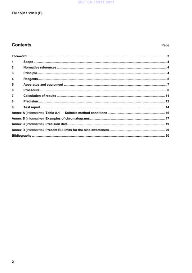 Present EU limits for the nine sweeteners . 29Bibliography . 30 SIST EN 15911:2011