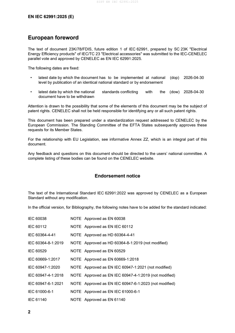 - Safety and environment: Drafted following IEC Guides for energy efficiency (118, 119) and safety (110). Designed for pollution degree 2, overvoltage category III, minimum protection degree IP20, and standard environmental conditions (clause 7).