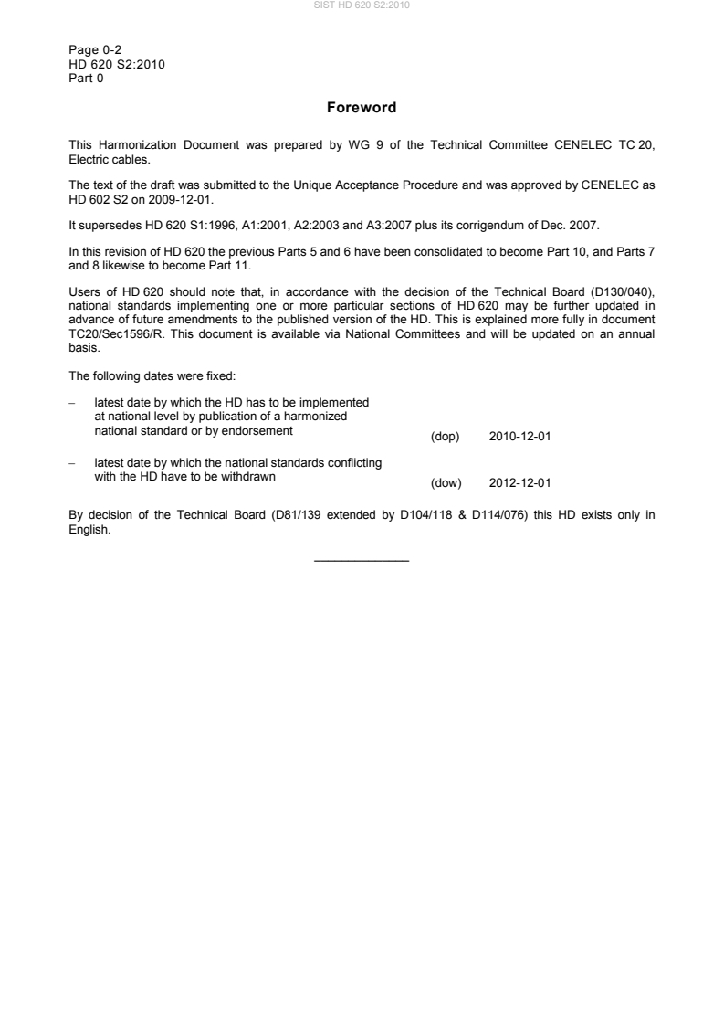 Ta slovenski standard je istoveten z: HD 620 S2:2010