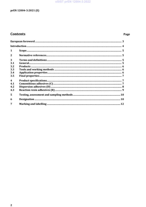 Keywords: prEN 12004-3, adhesives for ceramic tiles, cementitious adhesives, dispersion adhesives, reaction resin adhesives, tile adhesive designation, EN 12004, tile adhesive terminology, open time, slip, adhesion strength.