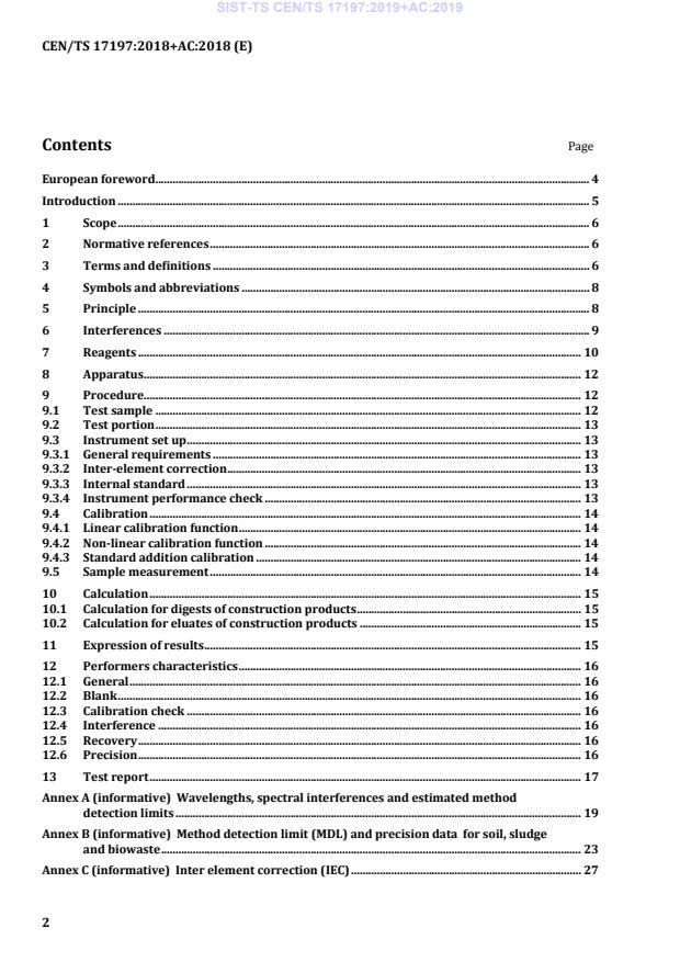 SIST-TS CEN/TS 17197:2019+AC:2019 is a technical specification published by the Slovenian Institute for Standardization (SIST). Its full title is "Construction products: Assessment of release of dangerous substances - Analysis of inorganic substances in digests and eluates - Analysis by Inductively Coupled Plasma - Optical Emission Spectrometry (ICP-OES)". This standard covers: This Technical Specification specifies the method for the determination of major, minor and trace elements in aqua regia and nitric acid digests and in eluates of construction products by Inductively Coupled Plasma – Optical Emission Spectrometry (ICP-OES). It refers to the following 44 elements: Aluminium (Al), antimony (Sb), arsenic (As), barium (Ba), beryllium (Be), bismuth (Bi), boron (B), cadmium (Cd), calcium (Ca), cerium (Ce), chromium (Cr), cobalt (Co), copper (Cu), iron (Fe), lanthanum (La), lead (Pb), lithium (Li), magnesium (Mg), manganese (Mn), mercury (Hg), molybdenum (Mo), neodymium (Nd), nickel (Ni), phosphorus (P), potassium (K), praseodymium (Pr), samarium (Sm), scandium (Sc), selenium (Se), silicon (Si), silver (Ag), sodium (Na), strontium (Sr), sulphur (S), tellurium (Te), thallium (Tl), thorium (Th), tin (Sn), titanium (Ti), tungsten (W), uranium (U), vanadium (V), zinc (Zn), and zirconium (Zr). For the determination of low levels of As, Se and Sb, hydride generation may be applied. This method is described in Annex D. NOTE Construction products include e.g. mineral-based products (S); bituminous products (B); metals (M); wood-based products (W); plastics and rubbers (P); sealants and adhesives (A); paints and coatings (C), see also CEN/TR 16045 [1]. The method in this Technical Specification is applicable to construction products and validated for the product types listed in Annex D.