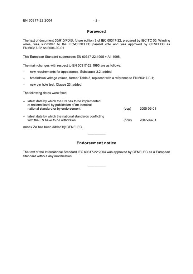 The text of the International Standard IEC 60317-22:2004 was approved by CENELEC as a European