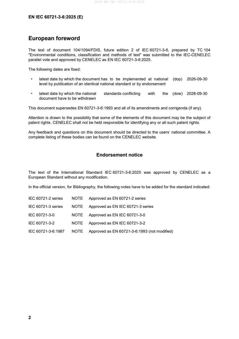 IEC 60721-3-6 has been prepared by IEC technical committee 104: Environmental conditions,