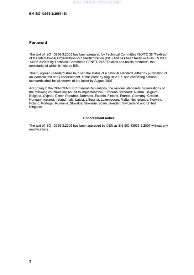 ISO 13936-3 was prepared by Technical Committee ISO/TC 38, Textiles, Subcommittee SC 24, Conditioning