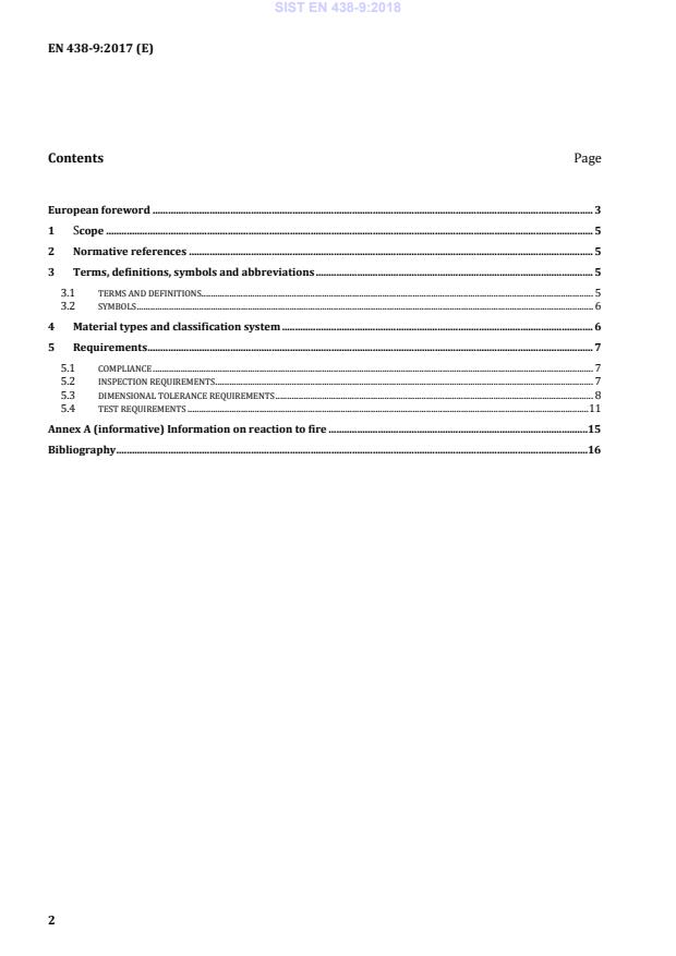 European foreword . 3 1 Scope . 5 2 Normative references . 5 3 Terms, definitions, symbols and abbreviations . 5 3.1 TERMS AND DEFINITIONS . 5 3.2 SYMBOLS . 6 4 Material types and classification system . 6 5 Requirements . 7 5.1 COMPLIANCE . 7 5.2 INSPECTION REQUIREMENTS . 7 5.3 DIMENSIONAL TOLERANCE REQUIREMENTS . 8 5.4 TEST REQUIREMENTS . 11 Annex A (informative) Information on reaction to fire . 15 Bibliography . 16