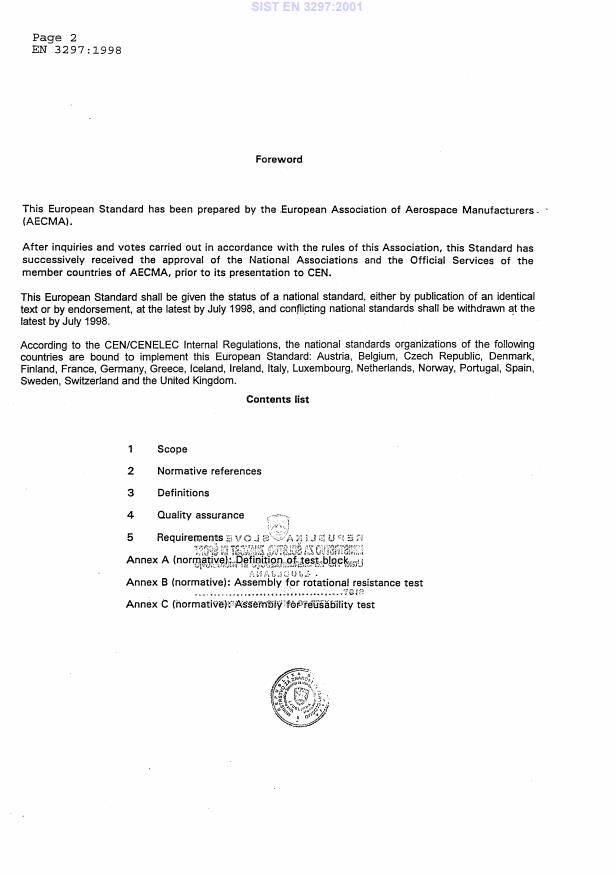 You can purchase SIST EN 3297:2001 directly from iTeh Standards. The document is available in PDF format and is delivered instantly after payment. Add the standard to your cart and complete the secure checkout process. iTeh Standards is an authorized distributor of SIST standards.